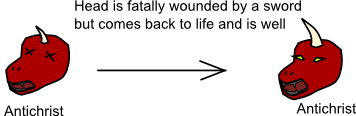 This makes sense when we add Revelation 13:3-5: "One of its (the beast's) heads seemed to have been fatally wounded, but now it was well. Everyone on earth marveled at this beast, and they worshiped the dragon who had given its authority to the beast. They also worshiped the beast and said,'No one is like this beast! No one can fight against it.' The beast was allowed to brag and claim to be God, and for forty-two months it was allowed to rule.". How was the Antichrist killed? Revelation 13:14 says "the beast that did not die after being wounded by a sword.", so it seems the Antichrist will be fatally stabbed, and either miraculously survive, or perhaps even really die and come back to life.